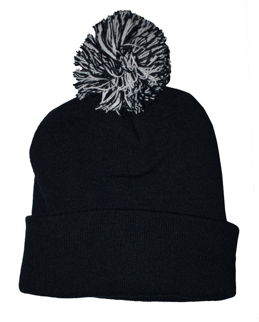 Pom Pom Beanie warm knitted unisex Black Navy Grey